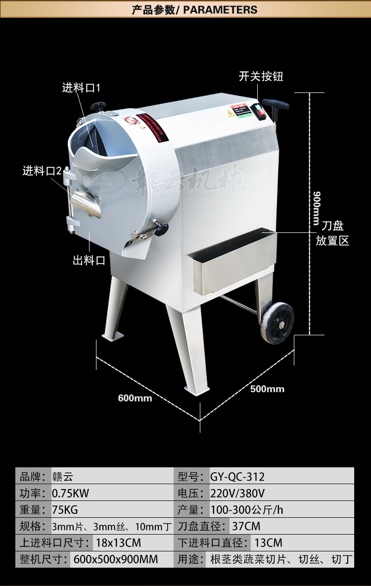 果蔬加工機(jī)械->切片切絲切丁機(jī)->GY-312型多功能切菜機(jī) | |||||||