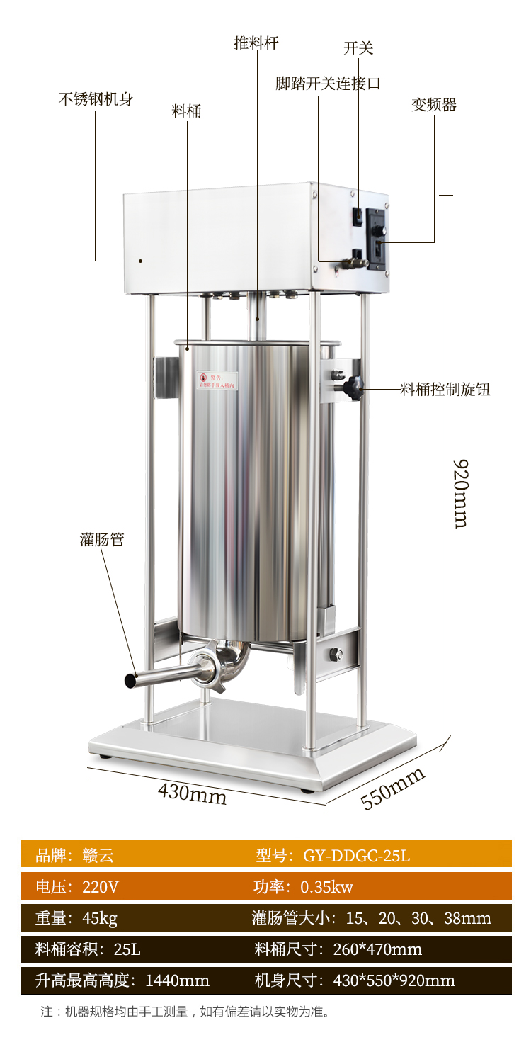 肉制品前處理->專用灌腸設(shè)備->25L電動灌腸機 | |||||||