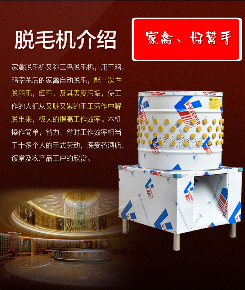 我們生產(chǎn)的這款打雞鴨毛的機(jī)器內(nèi)置的都是國標(biāo)銅芯電機(jī),可以供您用很久很久,每一臺(tái)全自動(dòng)家禽褪毛機(jī)出廠之前都是經(jīng)過了測(cè)試的,確保每一臺(tái)的實(shí)用性,加工廠雞鴨脫毛機(jī)操作簡單方便,只需要將燙好的雞鴨扔進(jìn)去啟動(dòng)機(jī)器即可,雞鴨鵝脫毛機(jī)器一直以來都是非常受歡迎的好設(shè)備,有需要的可隨時(shí)撥打電話。8373422對(duì)于全自動(dòng)家禽褪毛機(jī)我們是全國聯(lián)保一年的,無論您是在哪個(gè)城市均可以,一直以來我們都以生產(chǎn)加工廠雞鴨脫毛機(jī)為主要目標(biāo),現(xiàn)如今雞鴨鵝脫毛機(jī)器已經(jīng)深得大眾的支持和好評(píng)了,打雞鴨毛的機(jī)器現(xiàn)已紅遍大江南北,成為食品加工業(yè)不可缺少的一款設(shè)備,更多詳情歡迎隨時(shí)來電。